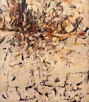 Evocative and poetic, "Number 13" was executed in 1956. This work attest to Morris’s deep interest in the metaphysical properties of painting, particularly his attempt to “achieve a visual dialogue between form and void.” "Number 13," with its all-over gestural abstraction and tonal variation, speaks to the artist’s investment in “what happens when light and color charge a space with energies that sometimes oscillate... space is not a static void.” Indeed, Morris believed throughout his career that the “ultimate reality” of a painting began and ended with the space of its surface. In The History of Modern Art, H. Harvey Arnason described the development of the work of Morris: